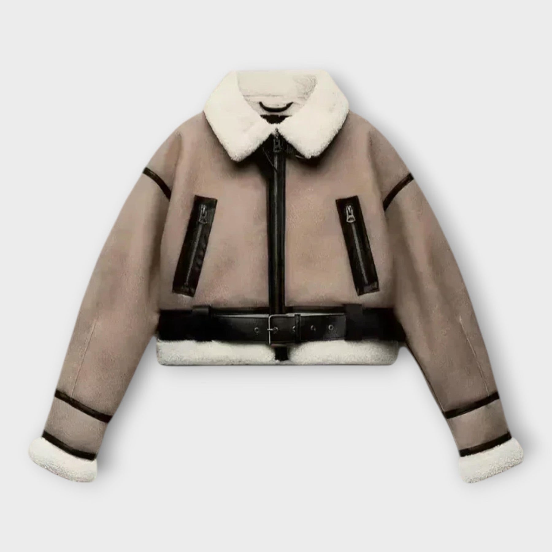 Leather Jacket with Lining and Belt
